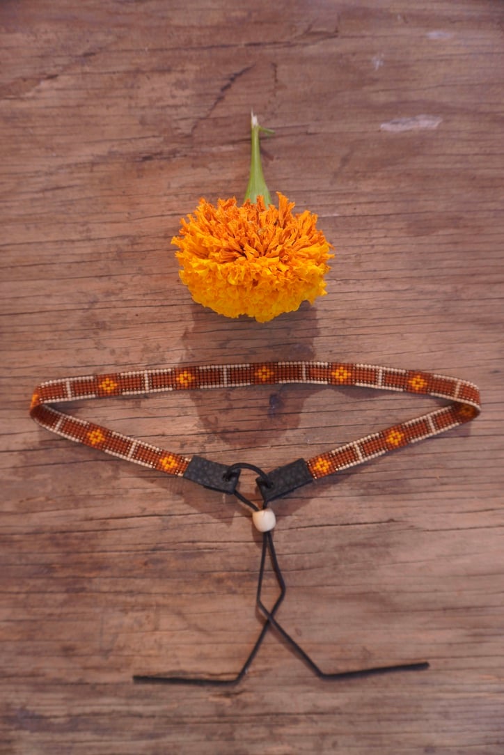 Hand loomed beaded hatband using size 11/0 glass Japanese seed beads.